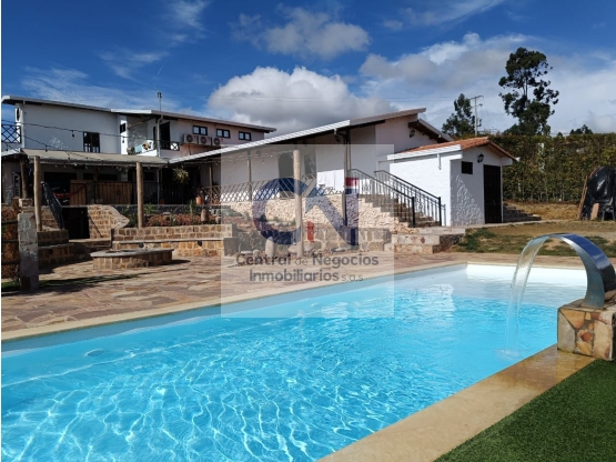 Casa de 2 plantas con 6 habitaciones cada una con su baño privado, adicionalmente tiene un baño para las visitas, viene con salon comedor, cocina en forma de isla, hall y estudio, el portico es bastante amplio, la casa tiene corredores al rededor de ella, tiene jardin, piscina, BBQ y el BBQ tiene comedor, bar y un horno en barro para hacer pizzas, sitio para hacer fogatas al lado de la piscina, arboles frutales y jardines al rededor de la casa.